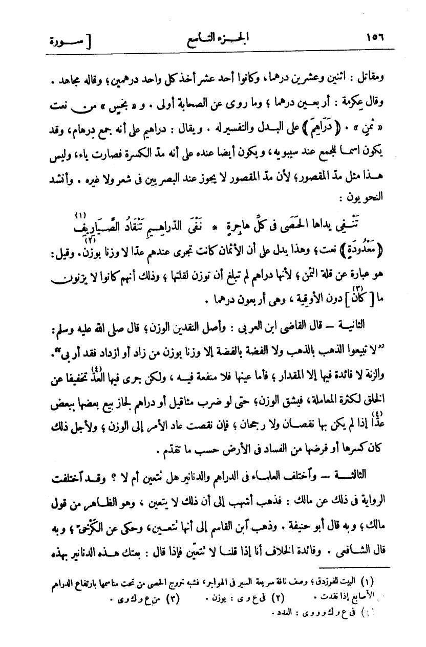 (مَعْدُودَةٍ) نَعْتٌ، وَهَذَا يَدُلُّ عَلَى أَنَّ الْأَثْمَانَ كَانَتْ تَجْرِي عِنْدَهُمْ عَدًّا لَا وَزْنًا بِوَزْنٍ «٢». وَقِيلَ: هُوَ عِبَارَةٌ عَنْ قِلَّةِ الثَّمَنِ، لِأَنَّهَا دَرَاهِمُ لَمْ تَبْلُغْ أَنْ تُوزَنَ لِقِلَّتِهَا، وَذَلِكَ أَنَّهُمْ كَانُوا لَا يَزِنُونَ مَا [كَانَ «٣»] دُونَ الْأُوقِيَّةِ، وَهِيَ أَرْبَعُونَ دِرْهَمًا. الثَّانِيَةُ- قَالَ الْقَاضِي ابْنُ الْعَرَبِيِّ: وَأَصْلُ النَّقْدَيْنِ الْوَزْنُ، قَالَ صَلَّى اللَّهُ عَلَيْهِ وَسَلَّمَ:" لَا تَبِيعُوا الذَّهَبَ بِالذَّهَبِ وَلَا الْفِضَّةَ بِالْفِضَّةِ إِلَّا وَزْنًا بِوَزْنٍ مَنْ زَادَ أَوِ ازْدَادَ فَقَدْ أَرْبَى". وَالزِّنَةُ لَا فَائِدَةَ فِيهَا إِلَّا الْمِقْدَارُ، فَأَمَّا عَيْنُهَا فَلَا مَنْفَعَةَ فِيهِ، وَلَكِنْ جَرَى فِيهَا الْعَدُّ «٤» تَخْفِيفًا عَنِ الْخَلْقِ لِكَثْرَةِ الْمُعَامَلَةِ، فَيَشُقُّ الْوَزْنُ، حَتَّى لَوْ ضَرَبَ مَثَاقِيلَ أَوْ دَرَاهِمَ لَجَازَ بَيْعُ بَعْضِهَا بِبَعْضٍ عَدًّا «٥» إِذَا لَمْ يَكُنْ بِهَا نُقْصَانٌ وَلَا رُجْحَانٌ، فَإِنْ نَقَصَتْ عَادَ الْأَمْرُ إِلَى الْوَزْنِ، وَلِأَجْلٍ ذَلِكَ كَانَ كَسْرُهَا أَوْ قَرْضُهَا مِنَ الْفَسَادِ فِي الْأَرْضِ حَسَبَ مَا تَقَدَّمَ. الثَّالِثَةُ- وَاخْتَلَفَ الْعُلَمَاءُ فِي الدَّرَاهِمِ وَالدَّنَانِيرِ هَلْ تَتَعَيَّنُ أَمْ لَا؟ وَقَدْ اخْتَلَفَتِ الرِّوَايَةُ فِي ذَلِكَ عَنْ مَالِكٍ: فَذَهَبَ أَشْهَبُ إِلَى أَنَّ ذَلِكَ لَا يَتَعَيَّنُ، وَهُوَ الظَّاهِرُ مِنْ قَوْلِ مَالِكٍ، وَبِهِ قَالَ أَبُو حَنِيفَةَ. وَذَهَبَ ابْنُ الْقَاسِمِ إِلَى أَنَّهَا تَتَعَيَّنُ، وَحُكِيَ عَنِ الْكَرْخِيِّ، وَبِهِ قَالَ الشَّافِعِيُّ. وَفَائِدَةُ الْخِلَافِ أَنَّا إِذَا قُلْنَا لَا تَتَعَيَّنُ فَإِذَا قَالَ: بِعْتُكَ، هَذِهِ الدَّنَانِيرَ بِهَذِهِ