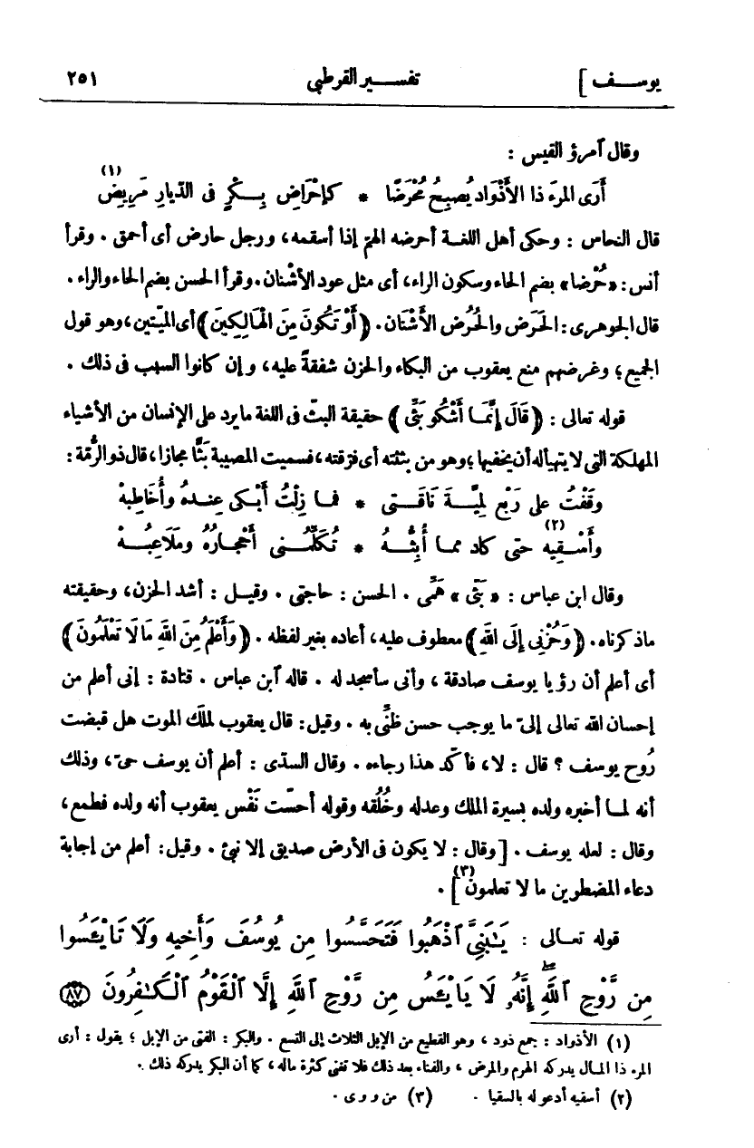 قَالَ النَّحَّاسُ: وَحَكَى أَهْلُ اللُّغَةِ أَحَرَضَهُ الْهَمُّ إِذَا أَسْقَمَهُ، وَرَجُلٌ حَارِضٌ أَيْ أَحْمَقُ. وَقَرَأَ أَنَسٌ:" حُرْضًا" بِضَمِّ الْحَاءِ وَسُكُونِ الرَّاءِ، أَيْ مِثْلَ عُودِ الْأُشْنَانِ. وَقَرَأَ الْحَسَنُ بِضَمِّ الْحَاءِ وَالرَّاءِ. قَالَ الْجَوْهَرِيُّ: الْحَرَضُ وَالْحُرُضُ الْأُشْنَانُ. (أَوْ تَكُونَ مِنَ الْهالِكِينَ) أَيِ الْمَيِّتِينَ، وَهُوَ قَوْلُ الْجَمِيعِ، وَغَرَضُهُمْ مَنْعُ يَعْقُوبَ مِنَ الْبُكَاءِ وَالْحُزْنِ شَفَقَةً عَلَيْهِ، وَإِنْ كَانُوا السَّبَبَ فِي ذَلِكَ. قوله تعالى: الَ إِنَّما أَشْكُوا بَثِّي)