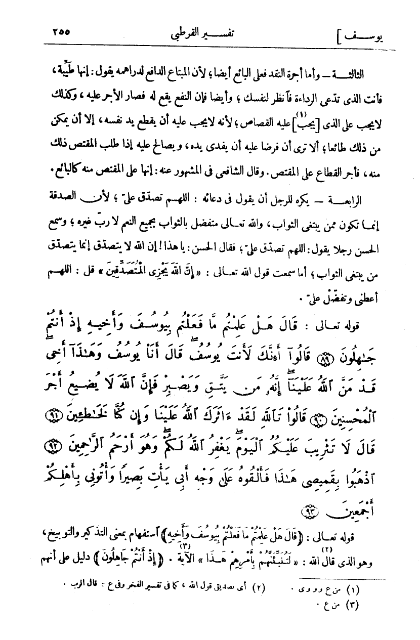 الثَّالِثَةُ- وَأَمَّا أُجْرَةُ النَّقْدِ فَعَلَى الْبَائِعِ أَيْضًا، لِأَنَّ الْمُبْتَاعَ الدَّافِعَ لِدَرَاهِمِهِ يَقُولُ: إِنَّهَا طَيِّبَةٌ، فَأَنْتَ الَّذِي تَدَّعِي الرَّدَاءَةَ فَانْظُرْ لِنَفْسِكَ، وَأَيْضًا فَإِنَّ النَّفْعَ يَقَعُ لَهُ فَصَارَ الْأَجْرُ عَلَيْهِ، وَكَذَلِكَ لَا يَجِبُ عَلَى الَّذِي [يَجِبُ] «١» عَلَيْهِ الْقِصَاصُ، لِأَنَّهُ لَا يَجِبُ عَلَيْهِ أَنْ يَقْطَعَ يَدَ نَفْسِهِ، إِلَّا أَنْ يُمَكَّنَ مِنْ ذَلِكَ طَائِعًا، أَلَا تَرَى أَنَّ فَرْضًا عَلَيْهِ أَنْ يَفْدِيَ يَدَهُ، وَيُصَالِحَ عَلَيْهِ إِذَا طَلَبَ الْمُقْتَصُّ ذَلِكَ مِنْهُ، فَأَجْرُ الْقَطَّاعِ عَلَى الْمُقْتَصِّ. وَقَالَ الشَّافِعِيُّ فِي الْمَشْهُورِ عَنْهُ: إِنَّهَا عَلَى الْمُقْتَصِّ مِنْهُ كَالْبَائِعِ. الرَّابِعَةُ- يُكْرَهُ لِلرَّجُلِ أَنْ يَقُولَ فِي دُعَائِهِ: اللَّهُمَّ تَصَدَّقْ عَلَيَّ، لِأَنَّ الصَّدَقَةَ إِنَّمَا تَكُونُ مِمَّنْ يَبْتَغِي الثَّوَابَ، وَاللَّهُ تَعَالَى مُتَفَضِّلٌ بِالثَّوَابِ بِجَمِيعِ النِّعَمِ لَا رَبَّ غَيْرُهُ، وَسَمِعَ الْحَسَنُ رَجُلًا يَقُولُ: اللَّهُمَّ تَصَدَّقْ عَلَيَّ، فَقَالَ الْحَسَنُ: يَا هَذَا! إِنَّ اللَّهَ لَا يَتَصَدَّقُ إِنَّمَا يَتَصَدَّقُ مَنْ يَبْتَغِي الثَّوَابَ، أَمَا سَمِعْتَ قَوْلَ اللَّهِ تَعَالَى:" إِنَّ اللَّهَ يَجْزِي الْمُتَصَدِّقِينَ" قل: اللهم أعطني وتفضل علي.