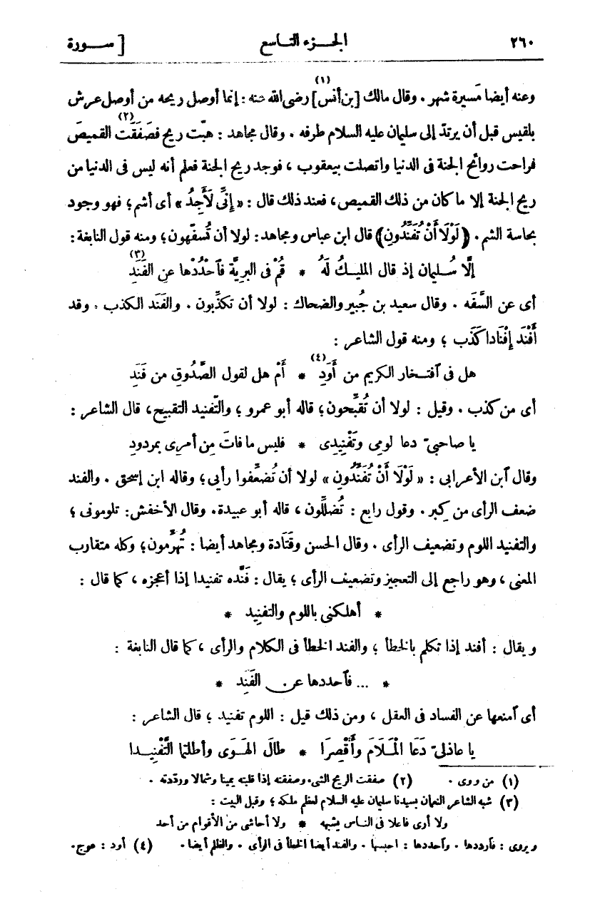 أَيْ عَنِ السَّفَهِ. وَقَالَ سَعِيدُ بْنُ جُبَيْرٍ وَالضَّحَّاكُ: لَوْلَا أَنْ تُكَذِّبُونِ. وَالْفَنَدُ الْكَذِبُ. وَقَدْ أَفْنَدَ إِفْنَادًا كَذَبَ، وَمِنْهُ قَوْلُ الشَّاعِرِ: