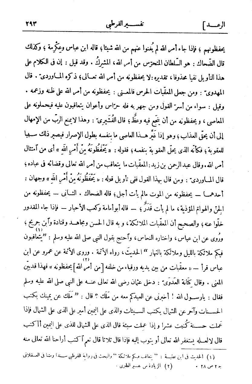 (١). الحديث في ابن عطية:" يتعاقب فيكم ملائكة" والبحث في رواية القرطبي سندا ومتنا في العسقلاني ج ٢ ص ٢٨.