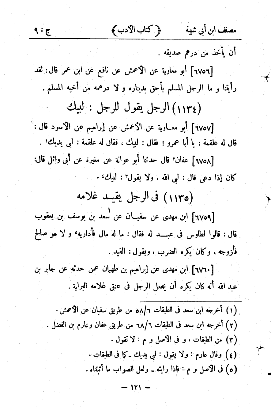 كتاب مصنف ابن أبي شيبة ط السلفية بالهند (اسم الجزء: 9)