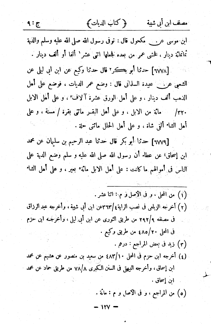 كتاب مصنف ابن أبي شيبة ط السلفية بالهند (اسم الجزء: 9)