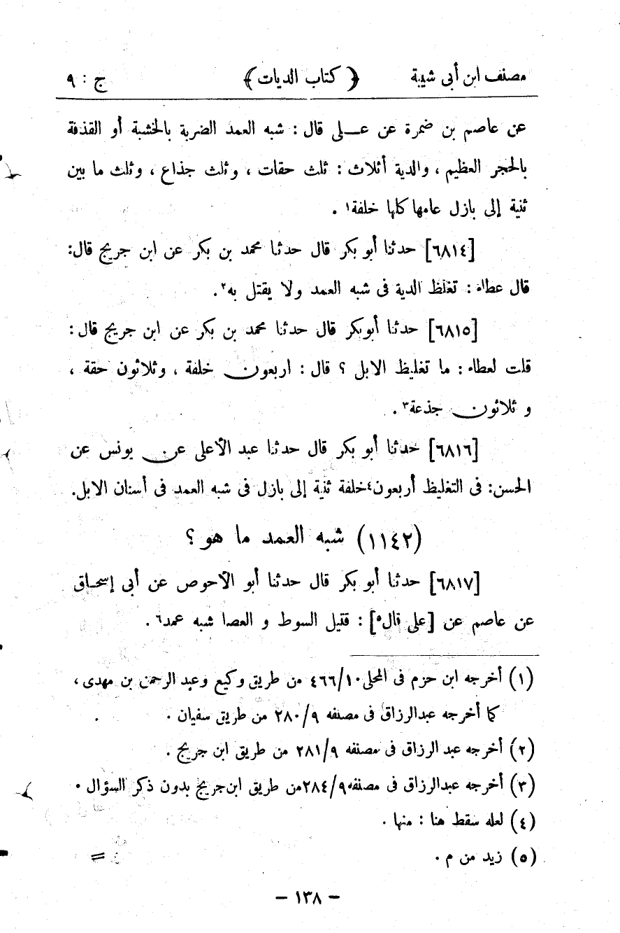 كتاب مصنف ابن أبي شيبة ط السلفية بالهند (اسم الجزء: 9)