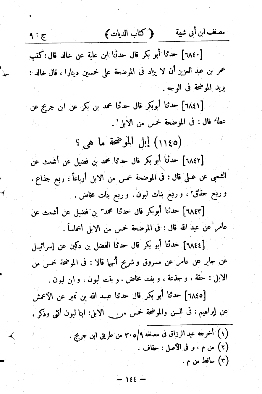 كتاب مصنف ابن أبي شيبة ط السلفية بالهند (اسم الجزء: 9)