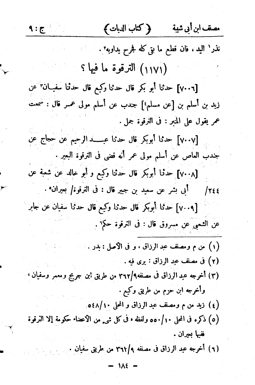 كتاب مصنف ابن أبي شيبة ط السلفية بالهند (اسم الجزء: 9)
