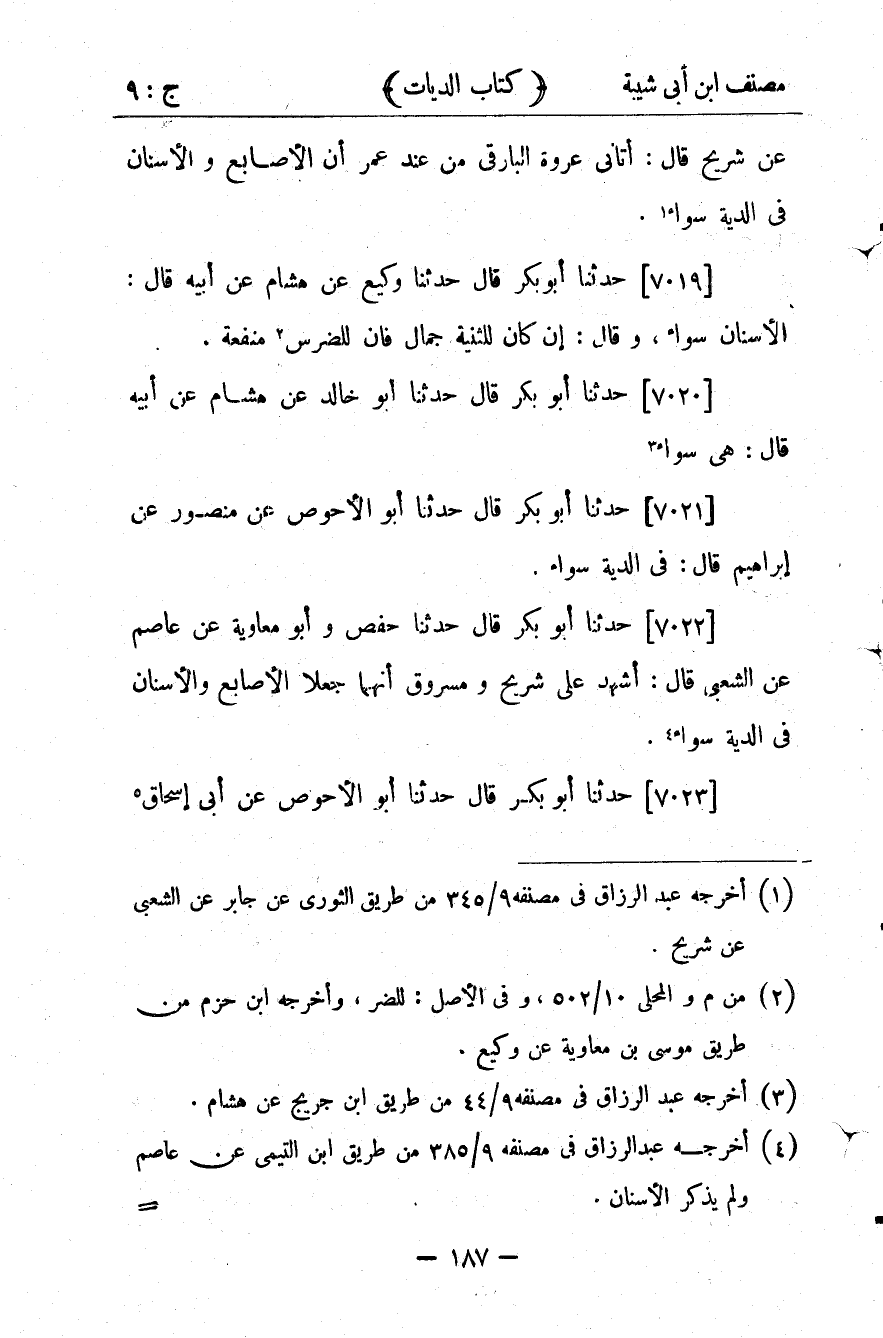 كتاب مصنف ابن أبي شيبة ط السلفية بالهند (اسم الجزء: 9)