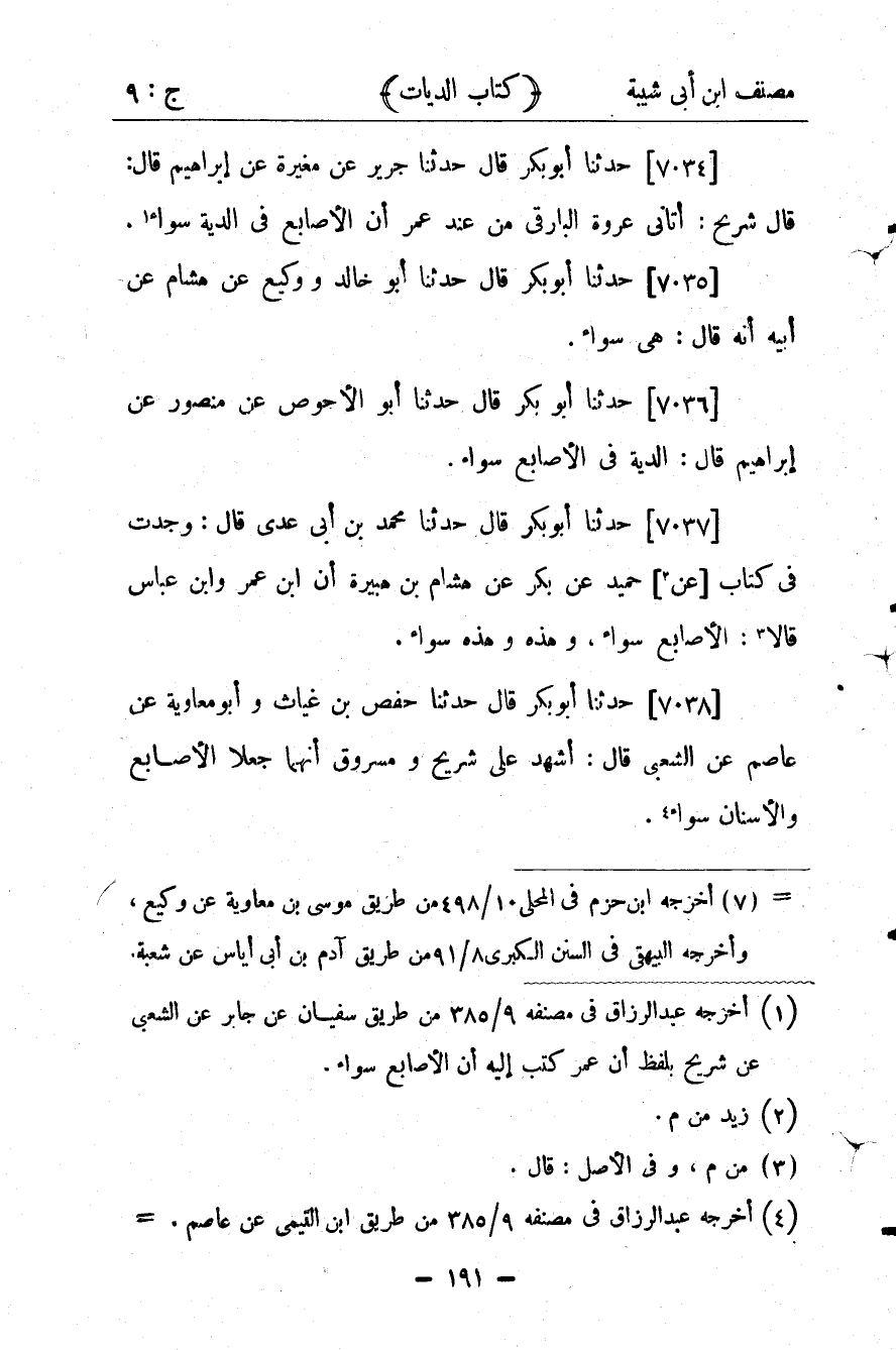 كتاب مصنف ابن أبي شيبة ط السلفية بالهند (اسم الجزء: 9)