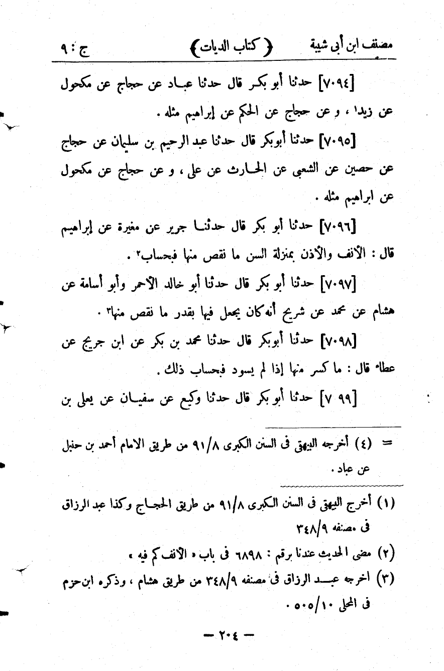 كتاب مصنف ابن أبي شيبة ط السلفية بالهند (اسم الجزء: 9)