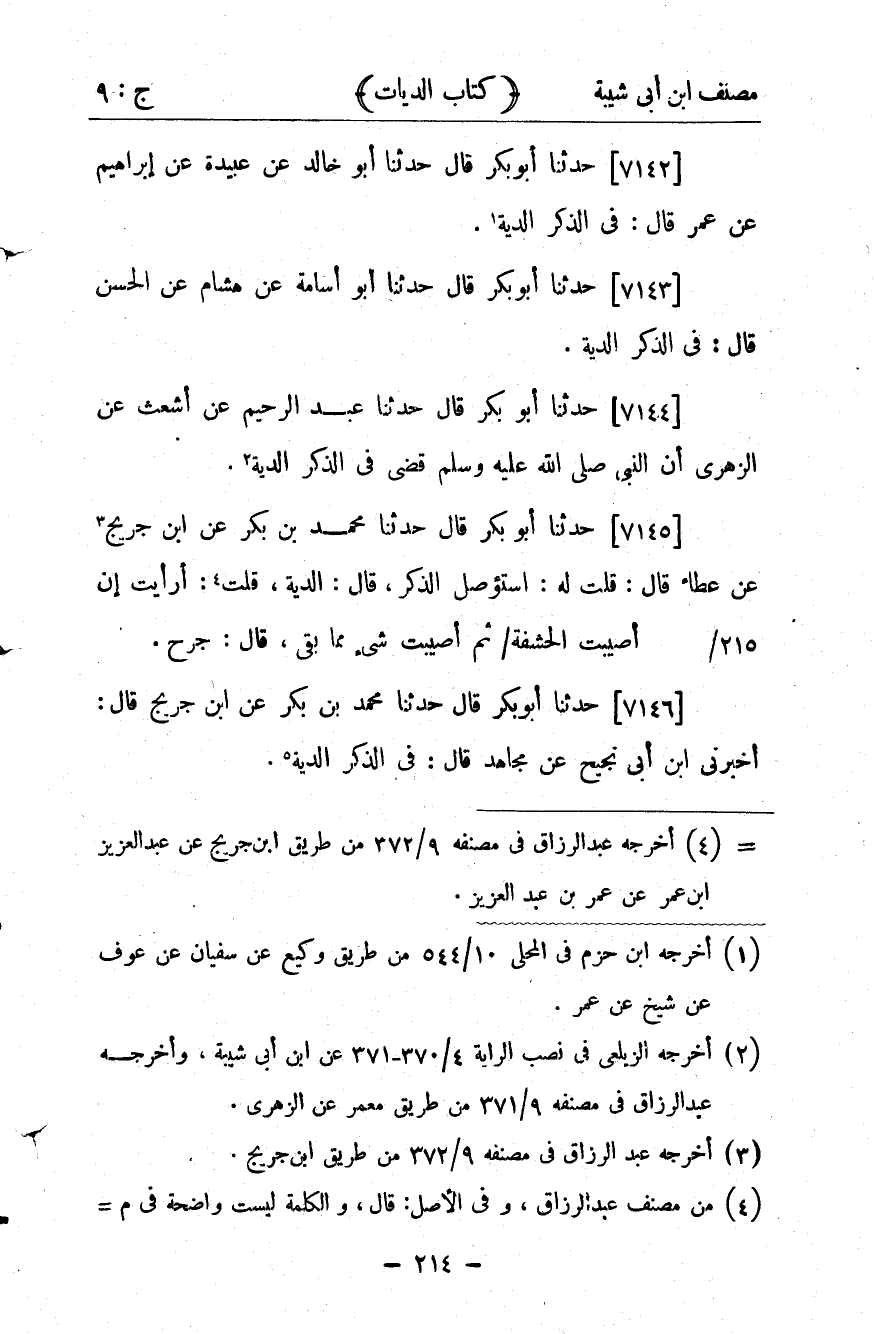 كتاب مصنف ابن أبي شيبة ط السلفية بالهند (اسم الجزء: 9)