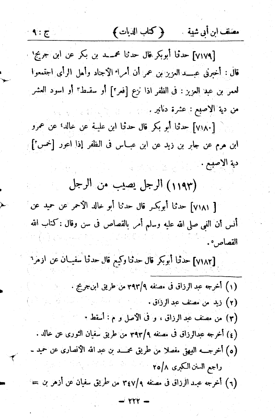 كتاب مصنف ابن أبي شيبة ط السلفية بالهند (اسم الجزء: 9)