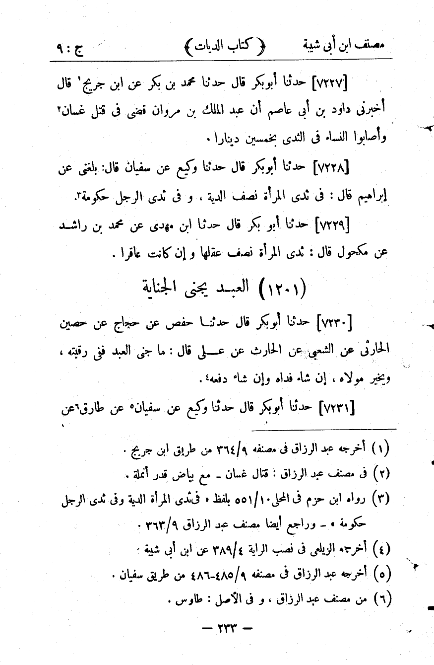 كتاب مصنف ابن أبي شيبة ط السلفية بالهند (اسم الجزء: 9)