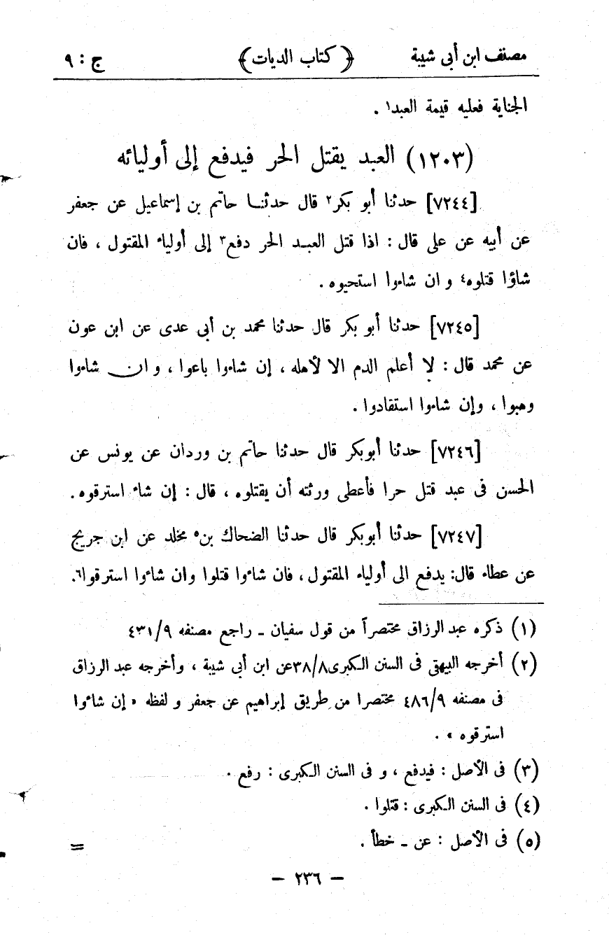 كتاب مصنف ابن أبي شيبة ط السلفية بالهند (اسم الجزء: 9)