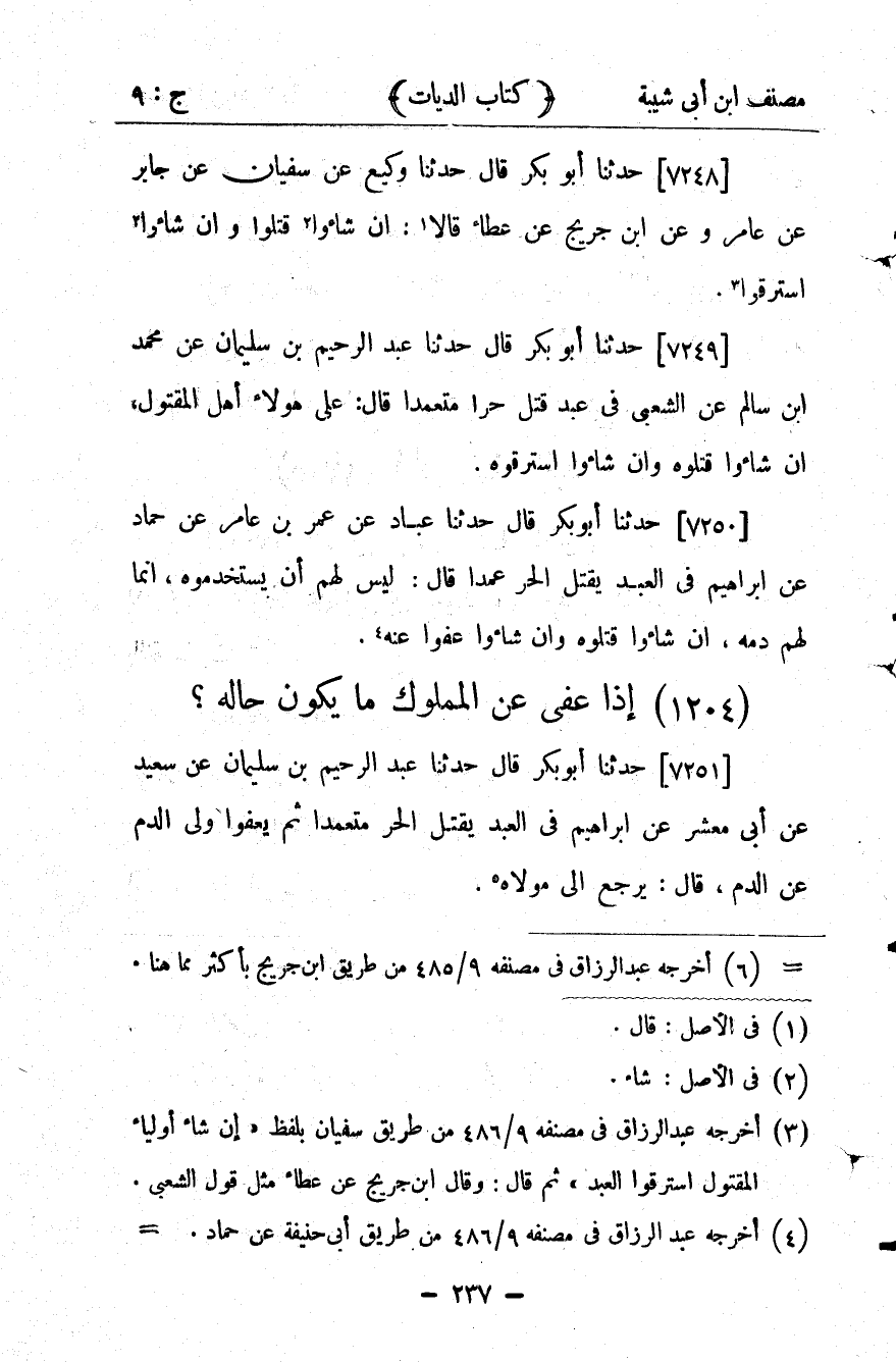 كتاب مصنف ابن أبي شيبة ط السلفية بالهند (اسم الجزء: 9)