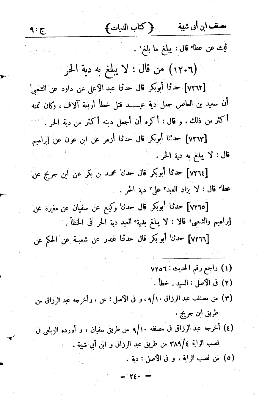 كتاب مصنف ابن أبي شيبة ط السلفية بالهند (اسم الجزء: 9)