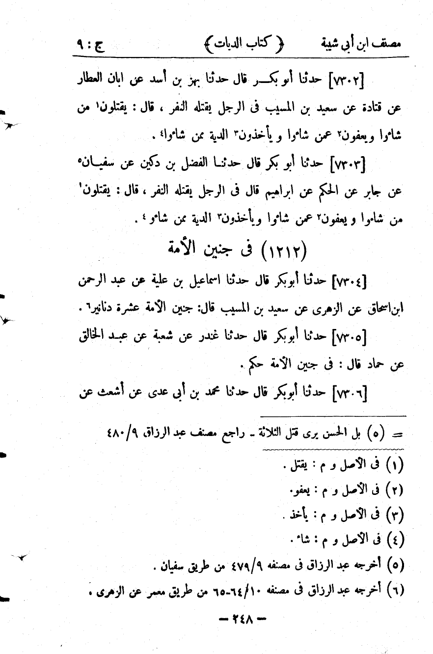كتاب مصنف ابن أبي شيبة ط السلفية بالهند (اسم الجزء: 9)
