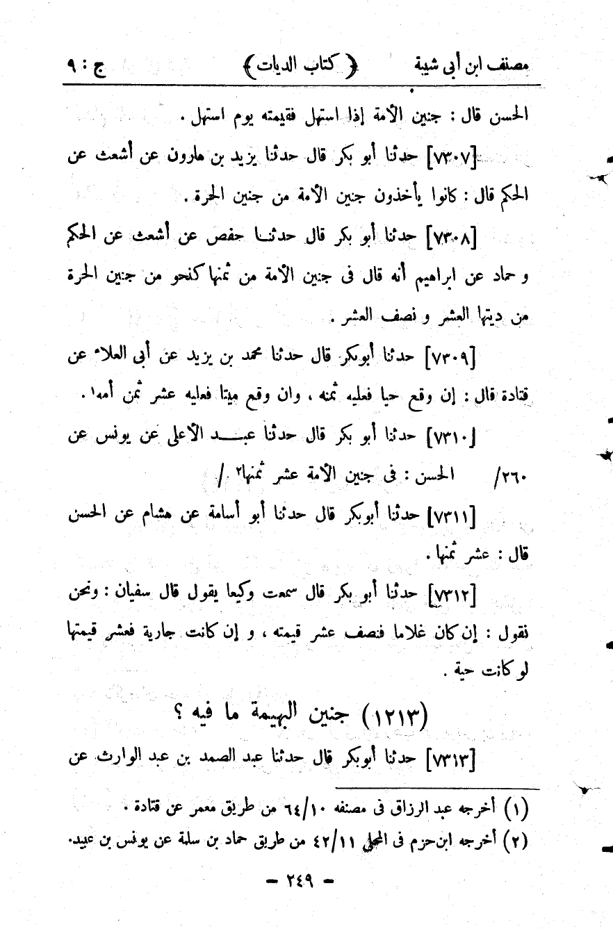 كتاب مصنف ابن أبي شيبة ط السلفية بالهند (اسم الجزء: 9)