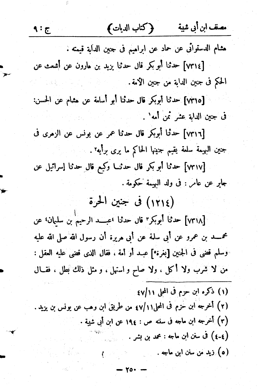 كتاب مصنف ابن أبي شيبة ط السلفية بالهند (اسم الجزء: 9)