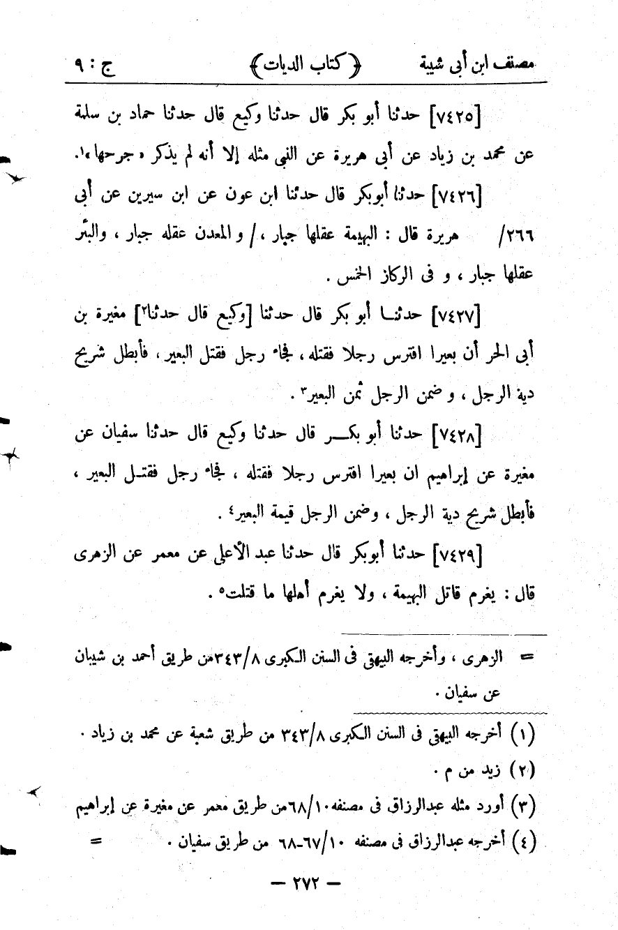 كتاب مصنف ابن أبي شيبة ط السلفية بالهند (اسم الجزء: 9)