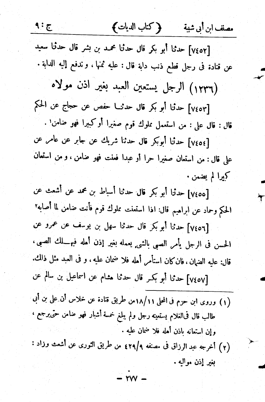 كتاب مصنف ابن أبي شيبة ط السلفية بالهند (اسم الجزء: 9)