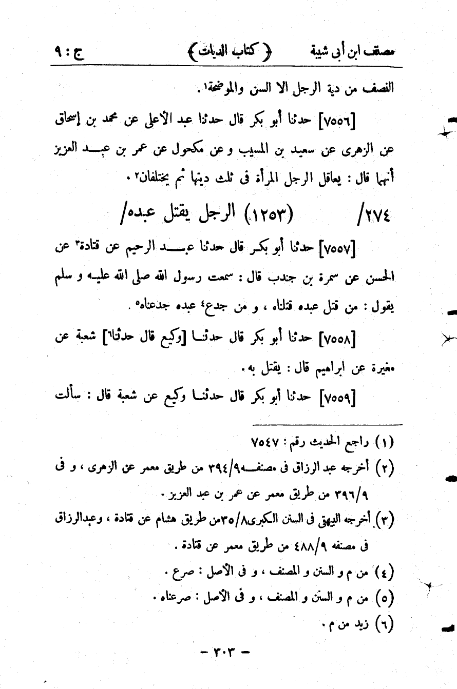 كتاب مصنف ابن أبي شيبة ط السلفية بالهند (اسم الجزء: 9)