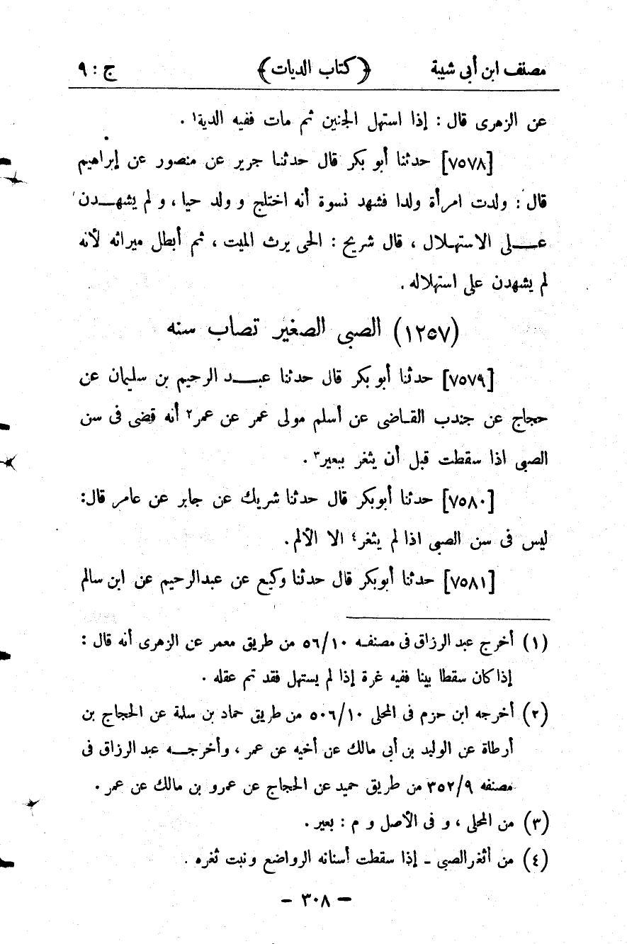 كتاب مصنف ابن أبي شيبة ط السلفية بالهند (اسم الجزء: 9)
