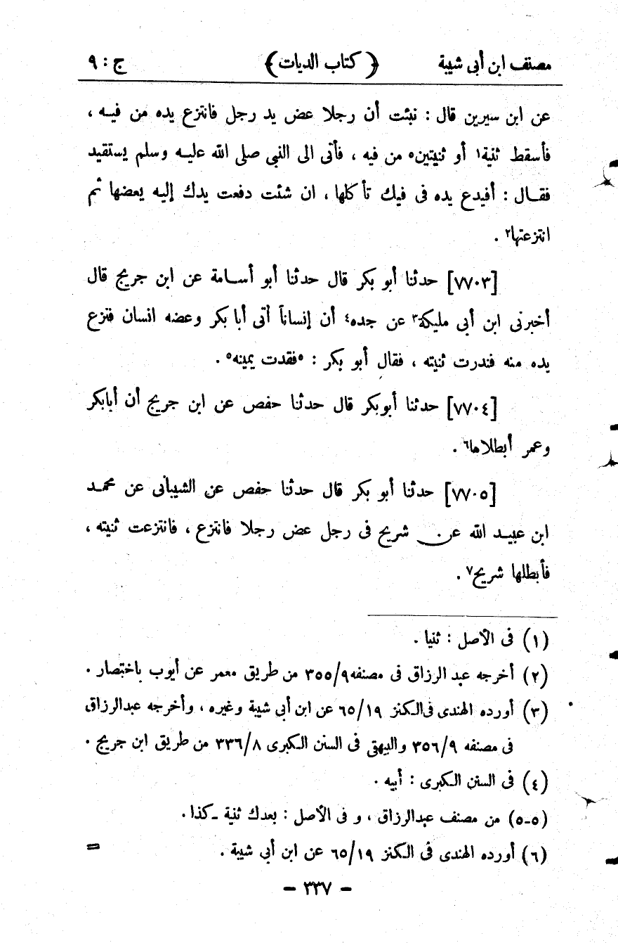 كتاب مصنف ابن أبي شيبة ط السلفية بالهند (اسم الجزء: 9)