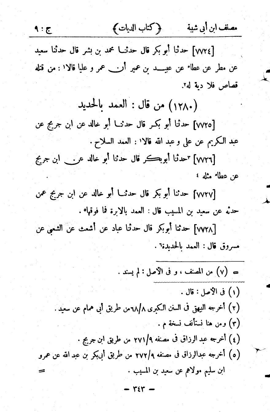 كتاب مصنف ابن أبي شيبة ط السلفية بالهند (اسم الجزء: 9)