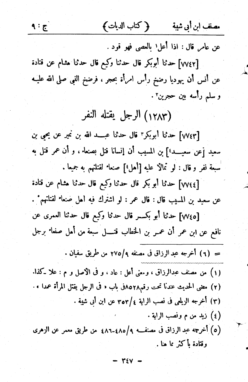 كتاب مصنف ابن أبي شيبة ط السلفية بالهند (اسم الجزء: 9)