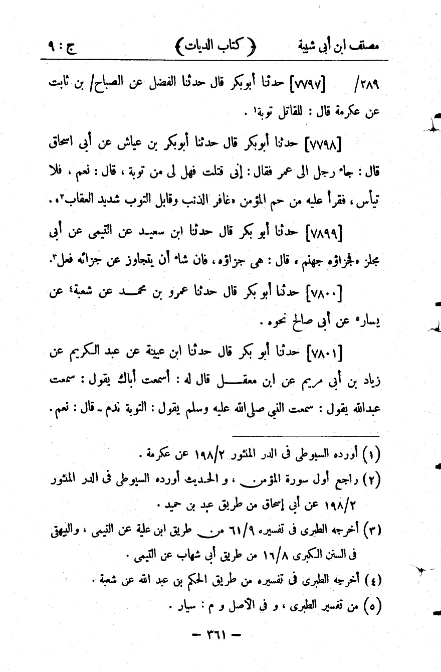 كتاب مصنف ابن أبي شيبة ط السلفية بالهند (اسم الجزء: 9)