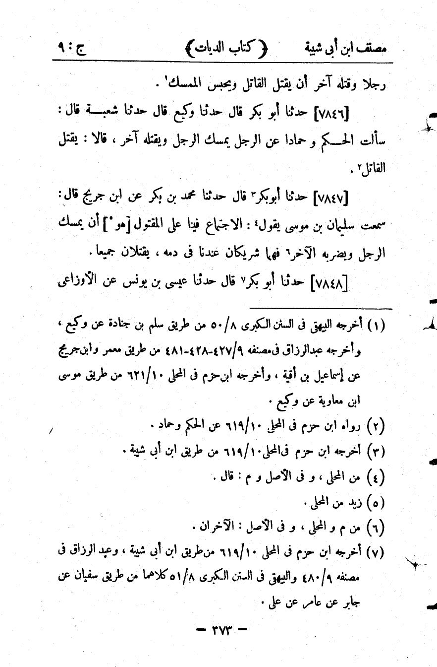 كتاب مصنف ابن أبي شيبة ط السلفية بالهند (اسم الجزء: 9)