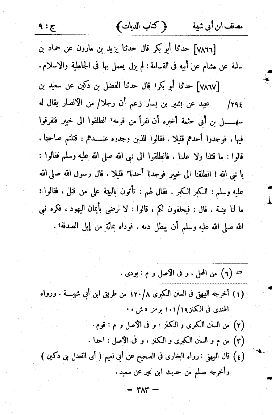 كتاب مصنف ابن أبي شيبة ط السلفية بالهند (اسم الجزء: 9)
