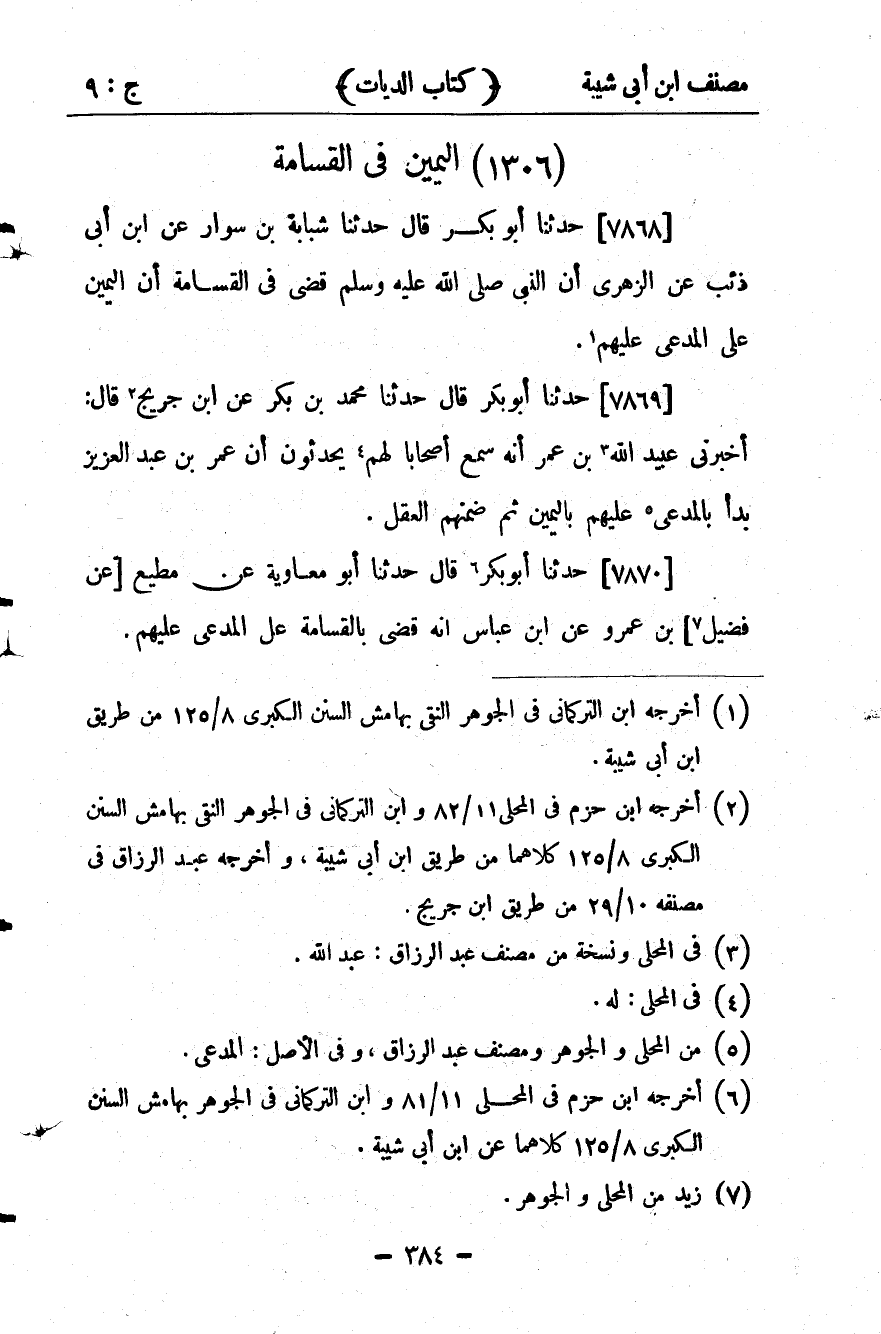 كتاب مصنف ابن أبي شيبة ط السلفية بالهند (اسم الجزء: 9)