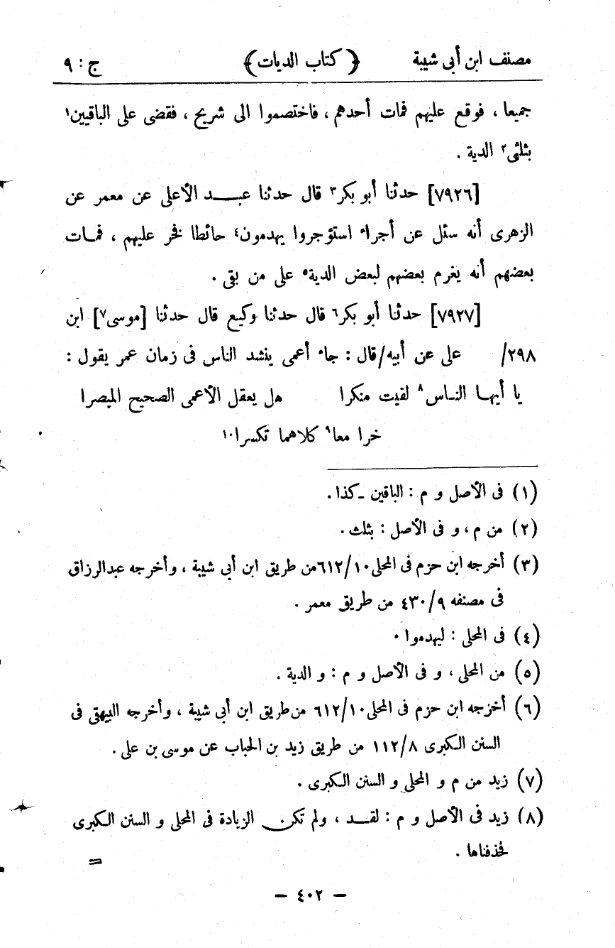 كتاب مصنف ابن أبي شيبة ط السلفية بالهند (اسم الجزء: 9)