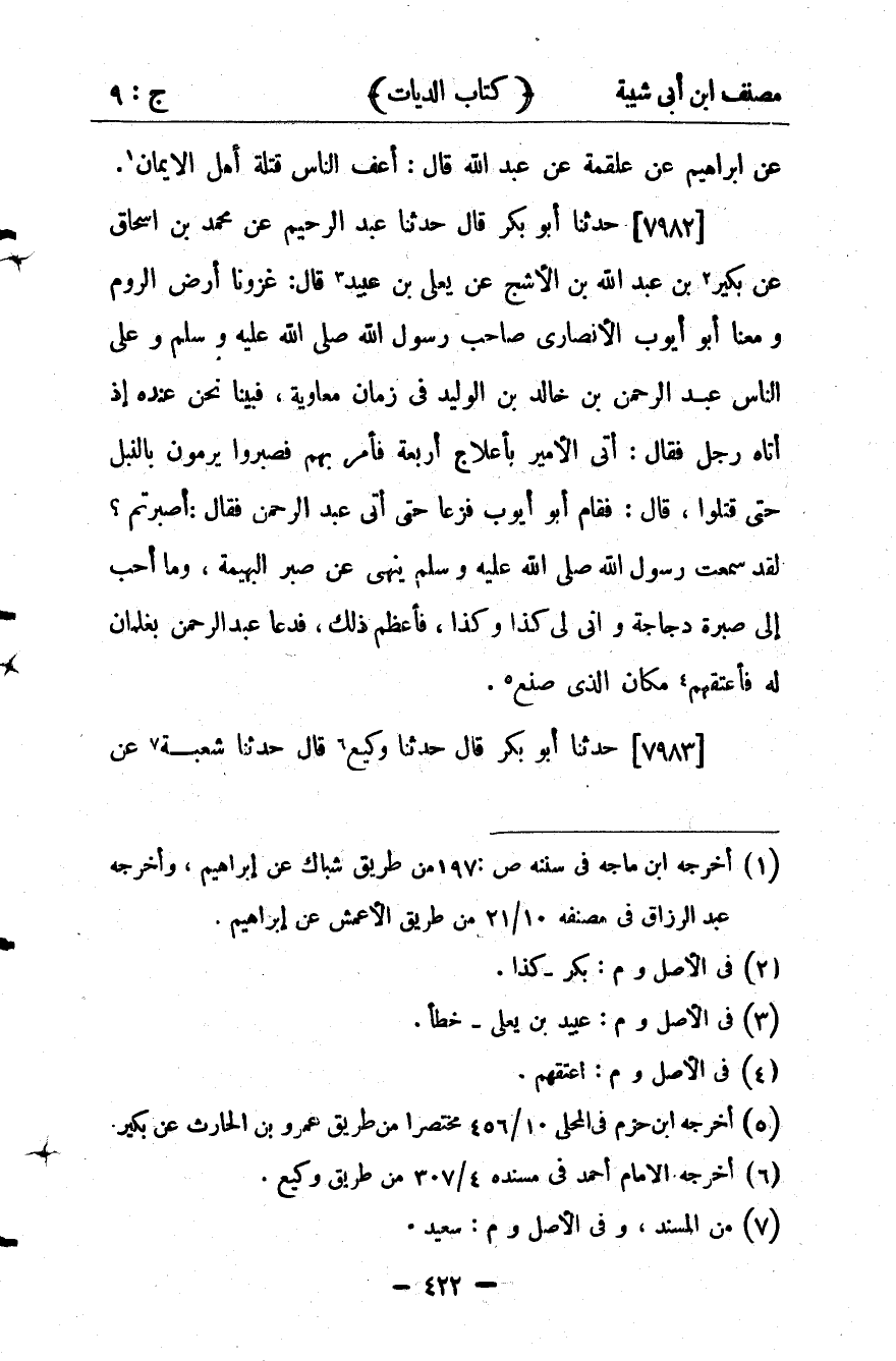 كتاب مصنف ابن أبي شيبة ط السلفية بالهند (اسم الجزء: 9)