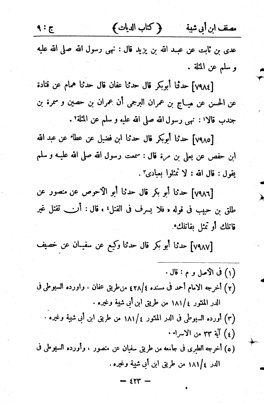 كتاب مصنف ابن أبي شيبة ط السلفية بالهند (اسم الجزء: 9)