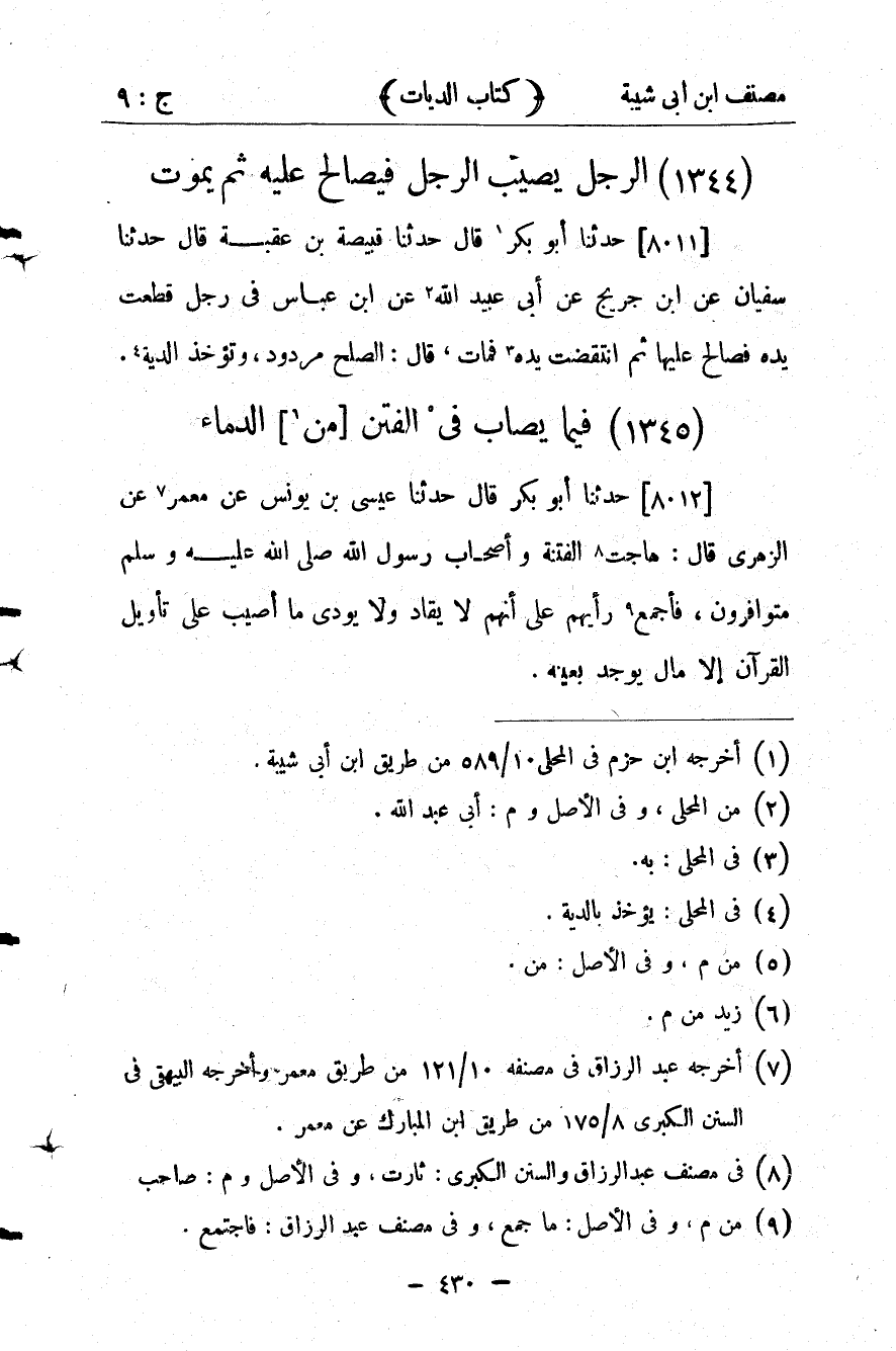 كتاب مصنف ابن أبي شيبة ط السلفية بالهند (اسم الجزء: 9)