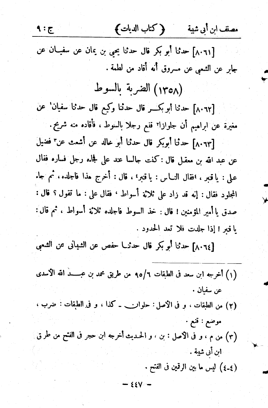 كتاب مصنف ابن أبي شيبة ط السلفية بالهند (اسم الجزء: 9)