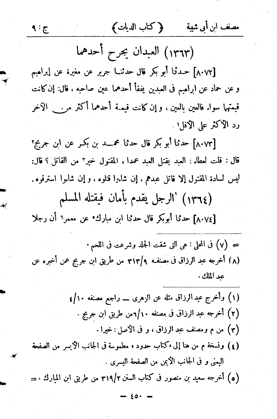 كتاب مصنف ابن أبي شيبة ط السلفية بالهند (اسم الجزء: 9)