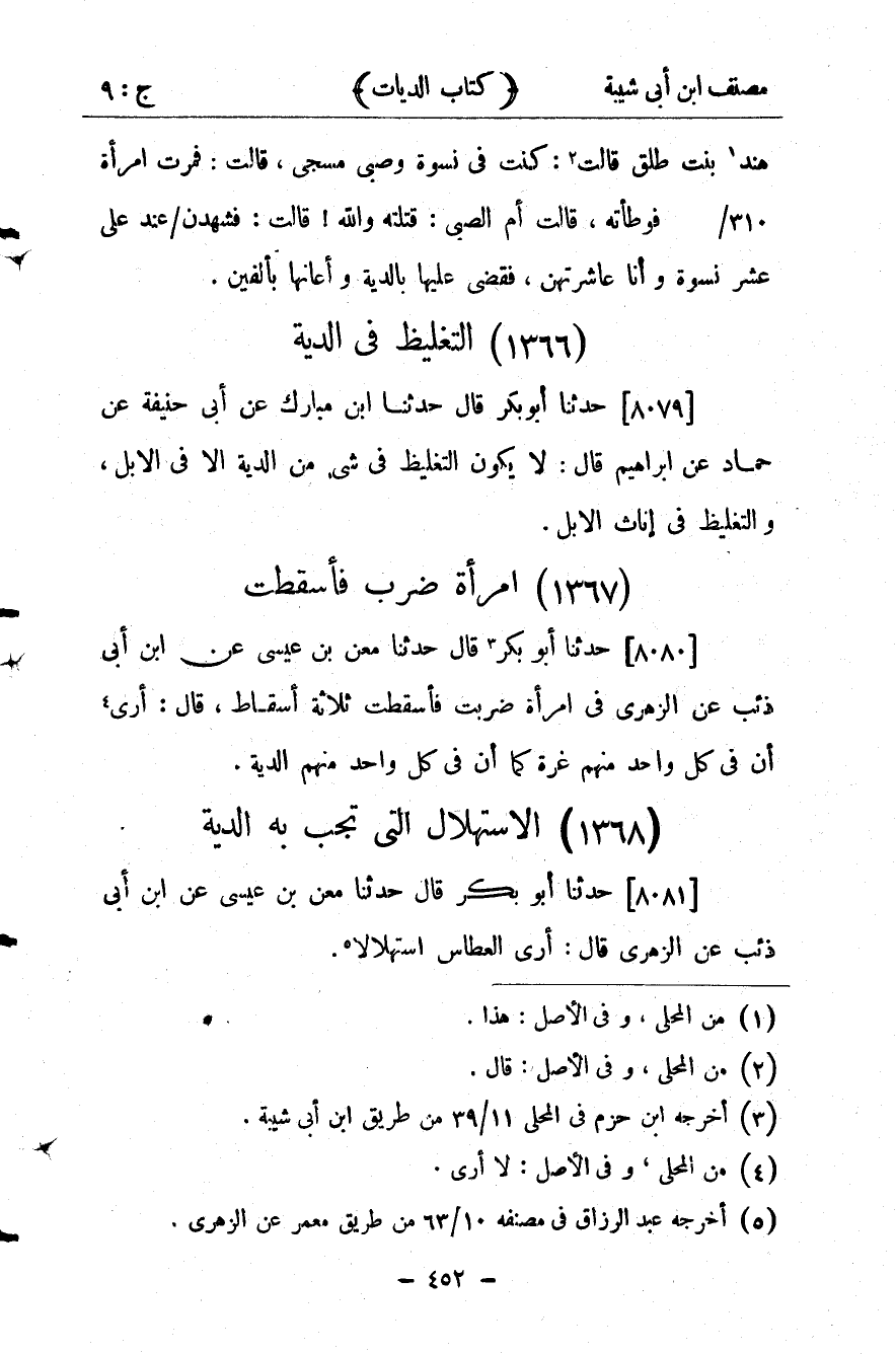 كتاب مصنف ابن أبي شيبة ط السلفية بالهند (اسم الجزء: 9)