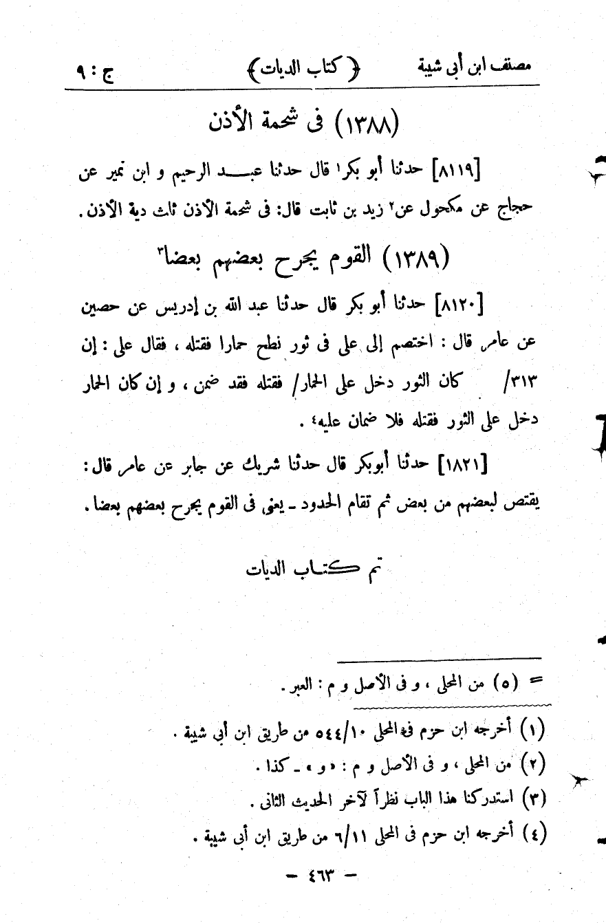 كتاب مصنف ابن أبي شيبة ط السلفية بالهند (اسم الجزء: 9)