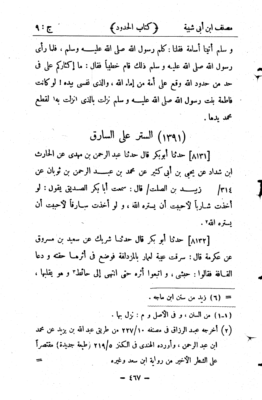 كتاب مصنف ابن أبي شيبة ط السلفية بالهند (اسم الجزء: 9)
