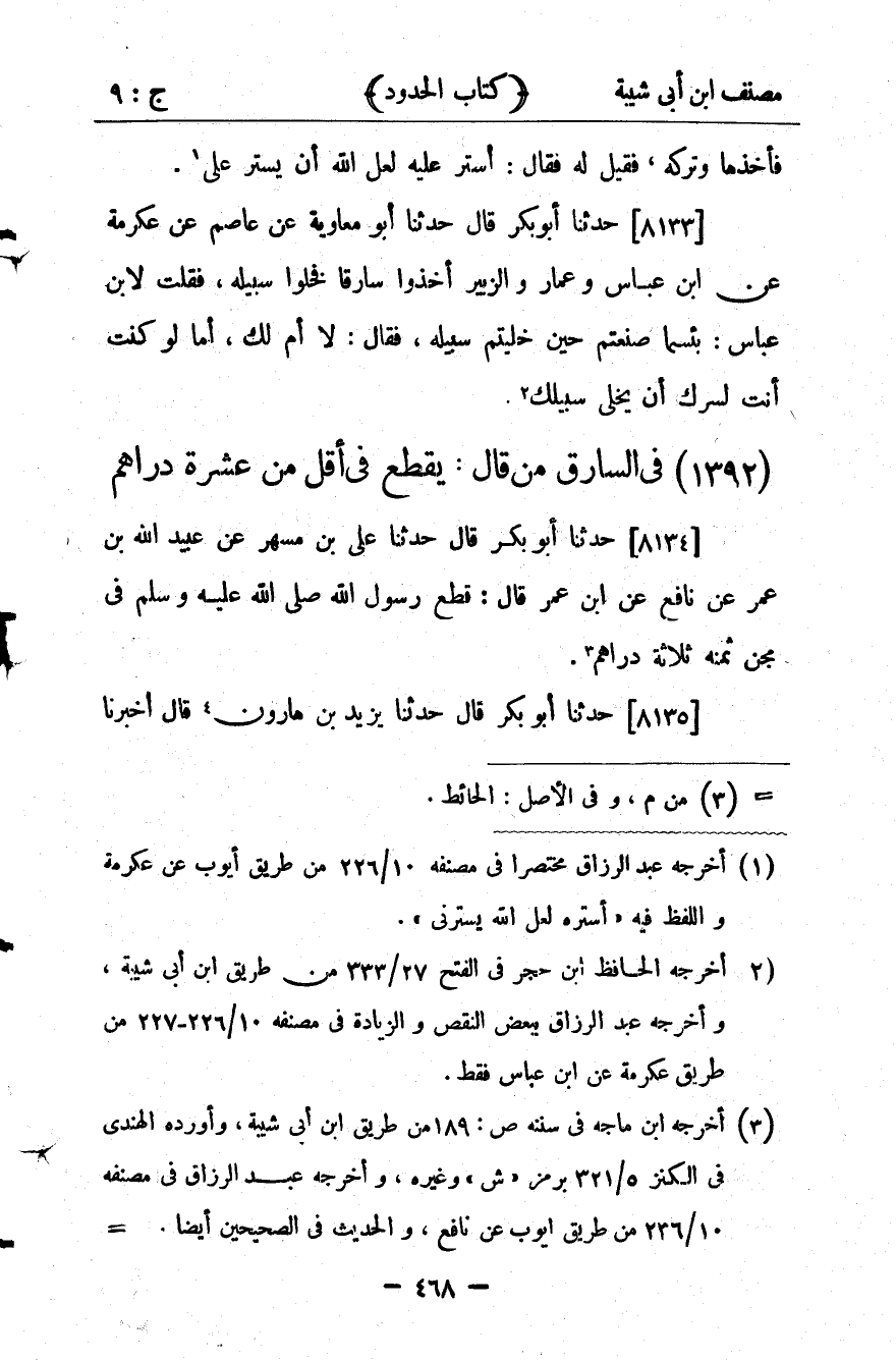 كتاب مصنف ابن أبي شيبة ط السلفية بالهند (اسم الجزء: 9)