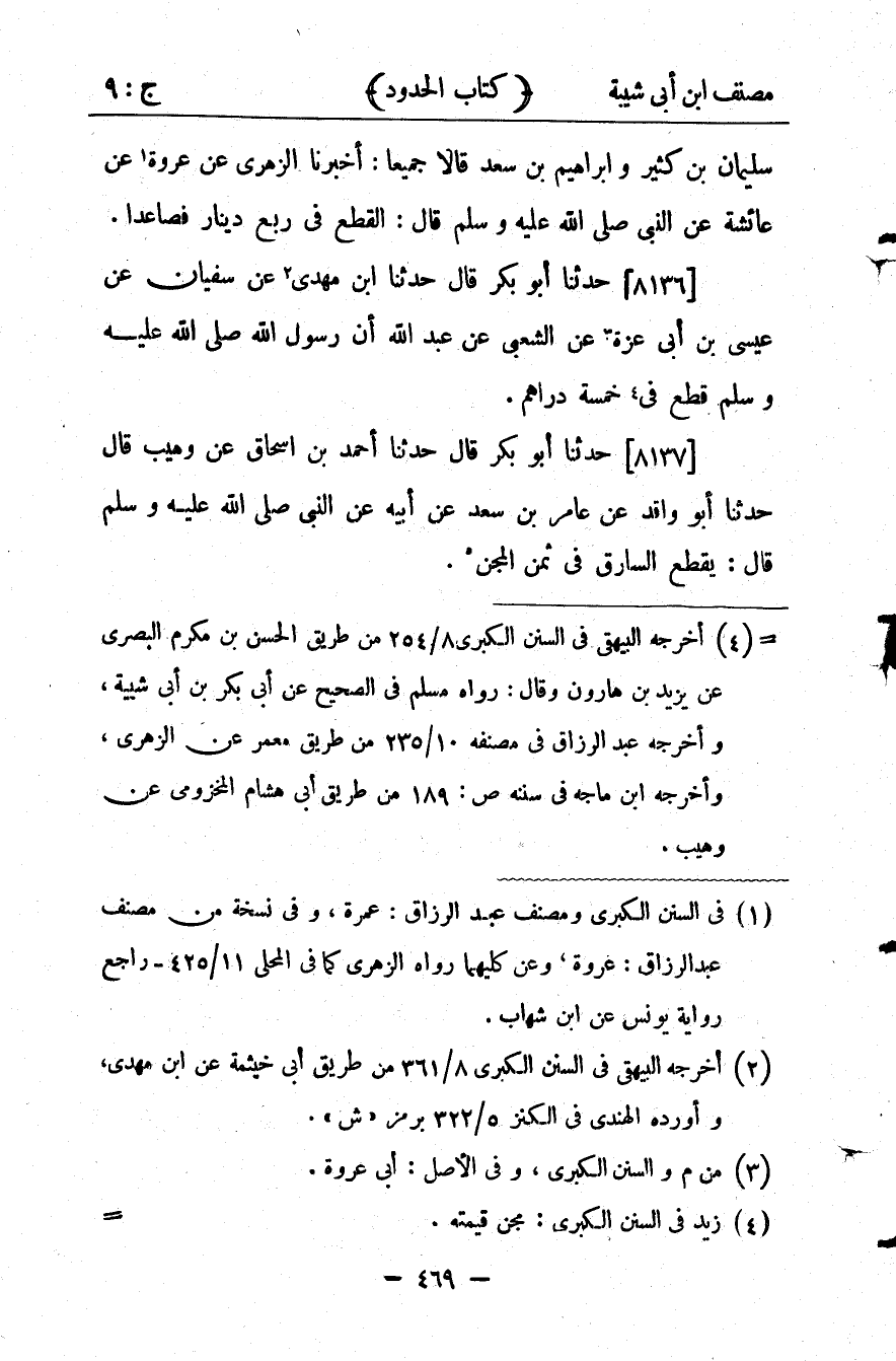 كتاب مصنف ابن أبي شيبة ط السلفية بالهند (اسم الجزء: 9)