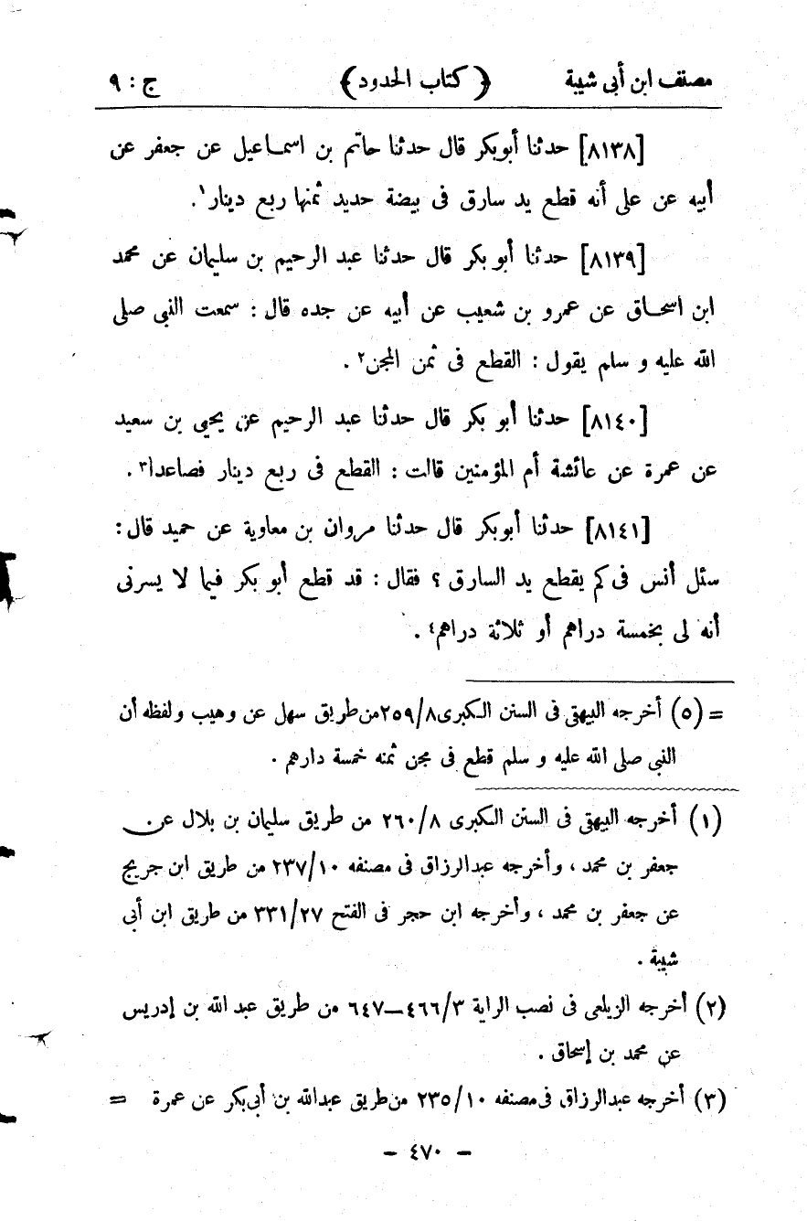 كتاب مصنف ابن أبي شيبة ط السلفية بالهند (اسم الجزء: 9)
