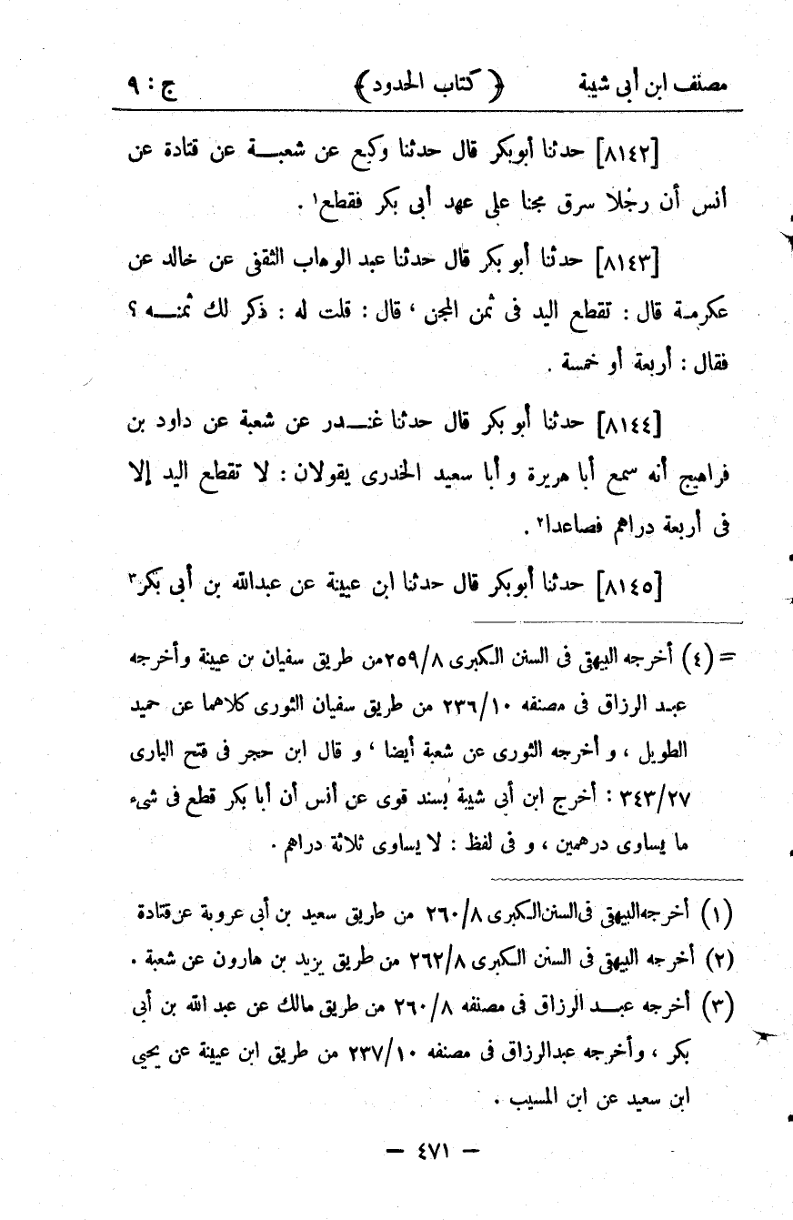 كتاب مصنف ابن أبي شيبة ط السلفية بالهند (اسم الجزء: 9)