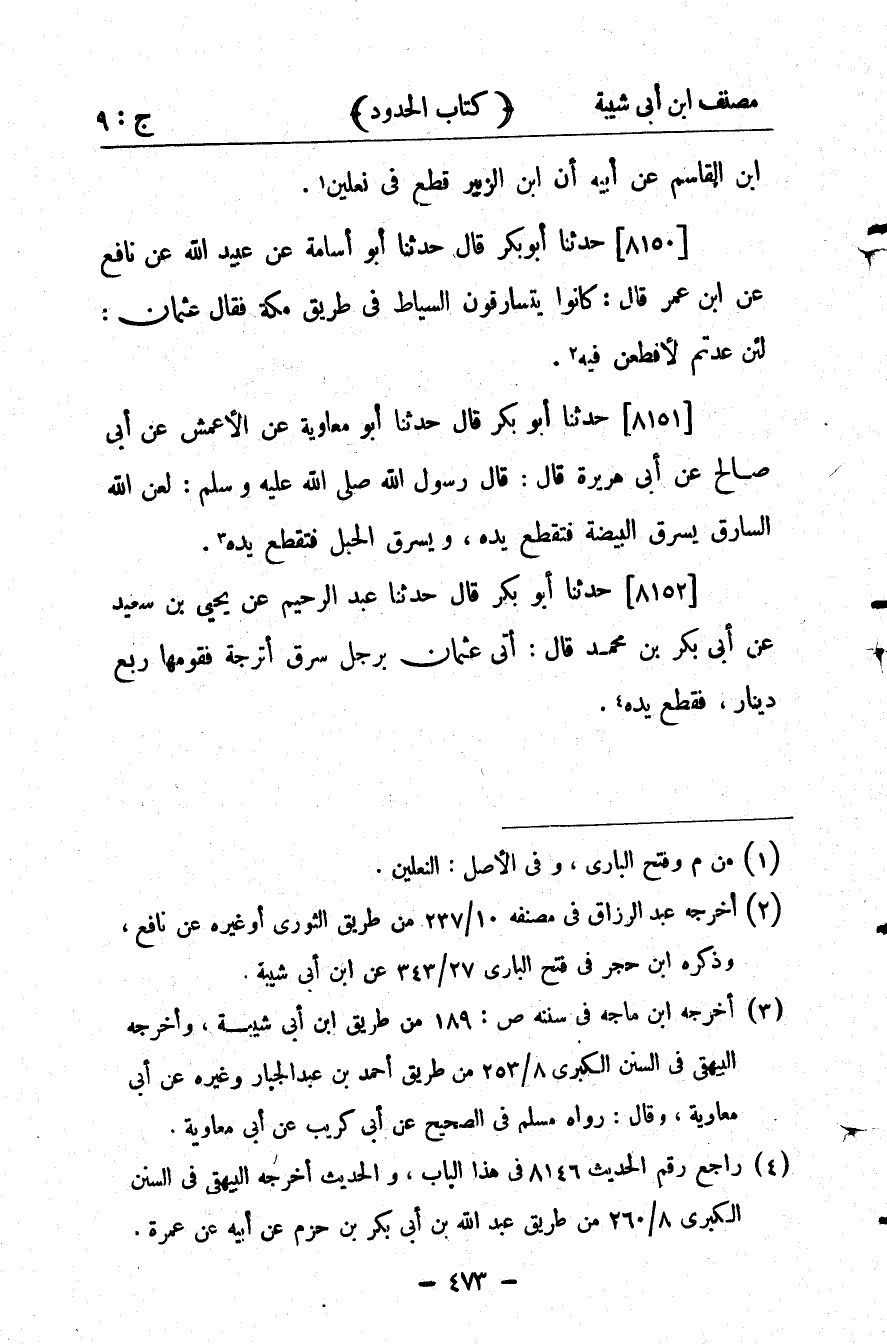 كتاب مصنف ابن أبي شيبة ط السلفية بالهند (اسم الجزء: 9)