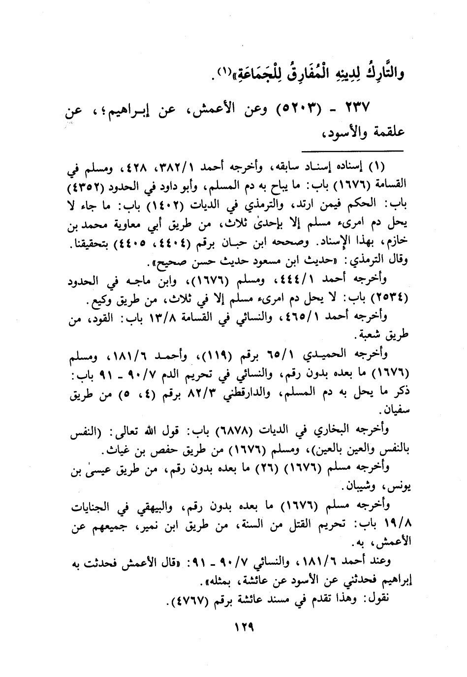 5203 - وَعَنِ الْأَعْمَشِ، عَنْ إِبْرَاهِيمَ، عَنْ عَلْقَمَةَ، وَالْأَسْوَدِ، عَنْ عَبْدِ اللَّهِ قَالَ: «إِذَا رَكَعَ أَحَدُكُمْ فَلْيَفْتَرِشْ ذِرَاعَيْهِ فَخِذَيْهِ، وَلْيَجْنَأْ»، قَالَ: §فَكَأَنِّي أَنْظُرُ إِلَى اخْتِلَافِ أَصَابِعِ رَسُولِ اللَّهِ صَلَّى اللهُ عَلَيْهِ وَسَلَّمَ، قَالَ: ثُمَّ طَبَّقَ كَفَّيْهِ فَأَرَاهُمْKإسناده صحيح