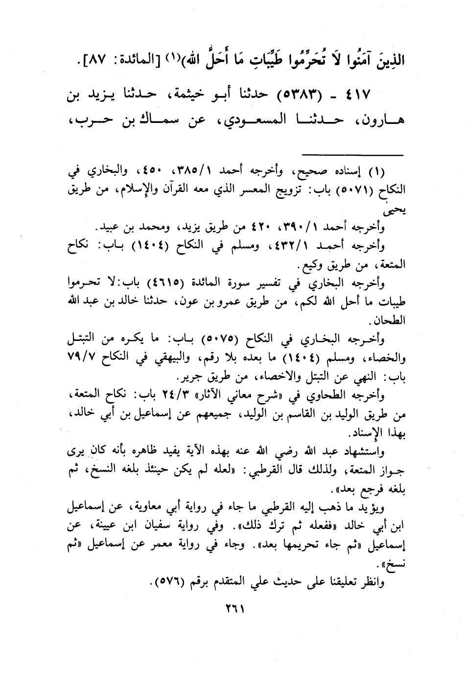 5383 - حَدَّثَنَا أَبُو خَيْثَمَةَ، حَدَّثَنَا يَزِيدُ بْنُ هَارُونَ، حَدَّثَنَا الْمَسْعُودِيُّ، عَنْ سِمَاكِ بْنِ حَرْبٍ، عَنْ عَبْدِ الرَّحْمَنِ بْنِ عَبْدِ اللَّهِ بْنِ مَسْعُودٍ، عَنْ أَبِيهِ عَبْدِ اللَّهِ قَالَ: " بَيْنَمَا §رَجُلٌ فِي مَمْلَكَتِهِ تَذَكَّرَ فَعَلِمَ أَنَّ مَا هُوَ فِيهِ مُنْقَطِعٌ، وَأَنَّهُ قَدْ شَغَلَهُ عَنْ عِبَادَةِ رَبِّهِ، فَانْسَابَ مِنْ قَصْرِهِ لَيْلًا حَتَّى صَارَ إِلَى مَمْلَكَةِ غَيْرِهِ، فَأَتَى سَاحِلَ الْبَحْرِ فَجَعَلَ يَضْرِبُ اللَّبَنَ فَيَعِيشُ بِهِ وَيَعْبُدُ رَبَّهُ، فَبَلَغَ الْمَلِكُ الَّذِي هُوَ فِي مَمْلَكَتِهِ عِبَادَتَهُ وَحَالَهُ فَأَرْسَلَ إِلَيْهِ، فَأَبَى أَنْ يَأْتِيَهُ، فَلَمَّا رَأَى ذَلِكَ رَكِبَ إِلَيْهِ، فَلَمَّا رَآهُ الْعَابِدُ هَرَبَ مِنْهُ، فَتَبِعَهُ عَلَى دَابَّتِهِ فَقَالَ: يَا عَبْدَ اللَّهِ: إِنَّهُ لَيْسَ عَلَيْكَ مِنِّي بَأْسٌ، ثُمَّ نَزَلَ إِلَيْهِ فَسَأَلَهُ عَنْ أَمْرِهِ، فَقَالَ: أَنَا فُلَانٌ صَاحِبُ مَمْلَكَةِ كَذَا وَكَذَا، تَذَكَّرْتُ فَعَلِمْتُ أَنَّ مَا كُنْتُ فِيهِ مُنْقَطِعٌ، وَأَنَّهُ قَدْ شَغَلَنِي عَنْ عِبَادَةِ رَبِّي، قَالَ: فَمَا أَنْتَ بِأَحَقَّ بِمَا صَنَعَتَ مِنِّي، ثُمَّ خَلَّى سَبِيلَ دَابَّتِهُ وَتَبِعَهُ، فَكَانَا يَعْبُدَانِ اللَّهَ جَمِيعًا، فَسَأَلَا اللَّهَ أَنْ يُمِيتَهُمَا جَمِيعًا، فَمَاتَا جَمِيعًا فَدُفِنَا "، قَالَ عَبْدُ اللَّهِ: فَلَوْ كُنْتُ بِرُمَيْلَةِ مِصْرَ لَأَرَيْتُكُمْ قُبُورَهُمَا بِالنَّعْتِ الَّذِي نَعْتَ لَنَا رَسُولُ اللَّهِ صَلَّى اللهُ عَلَيْهِ وَسَلَّمَKإسناده ضعيف