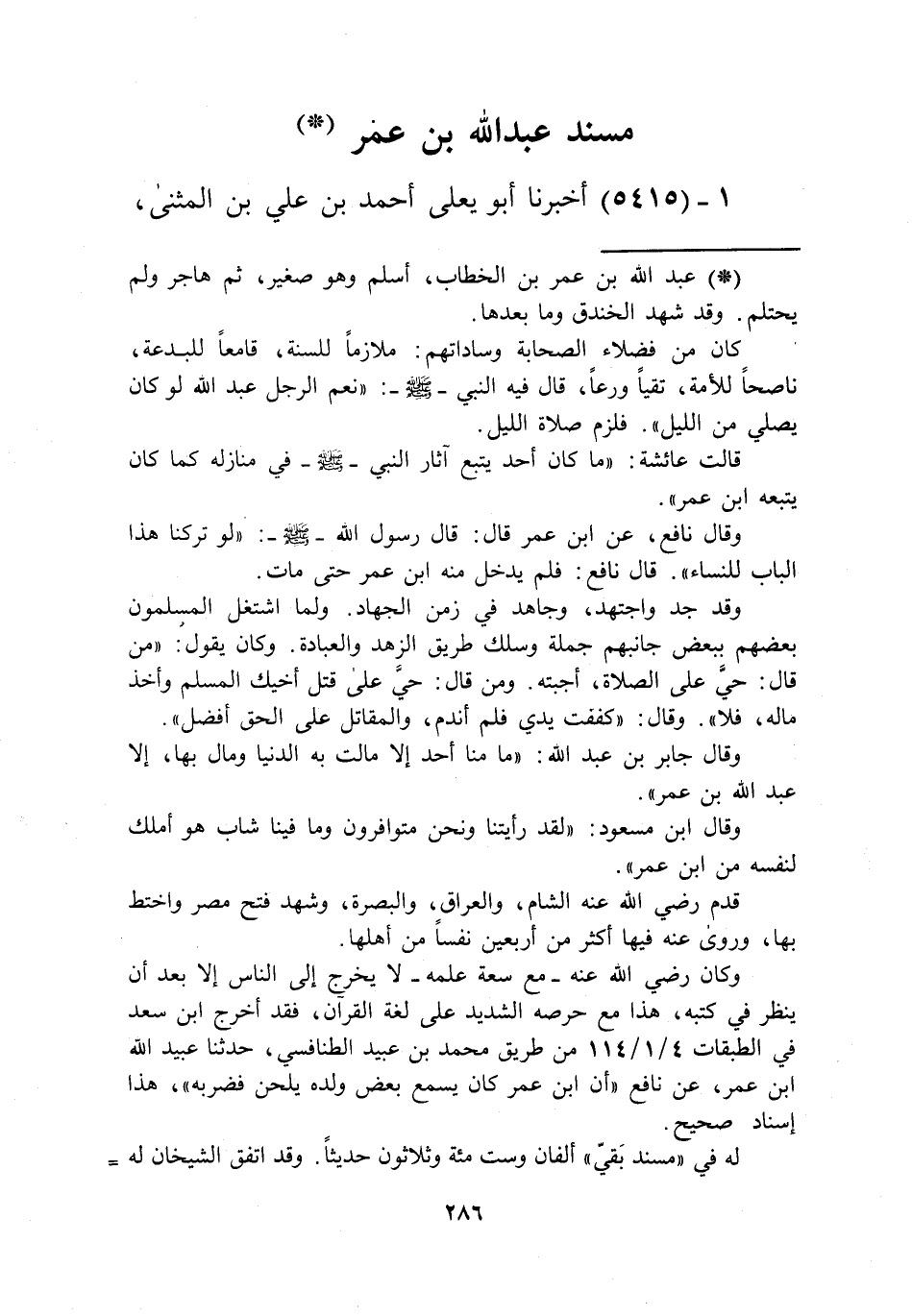 §مُسْنَدُ عَبْدِ اللَّهِ بْنِ عُمَرَ